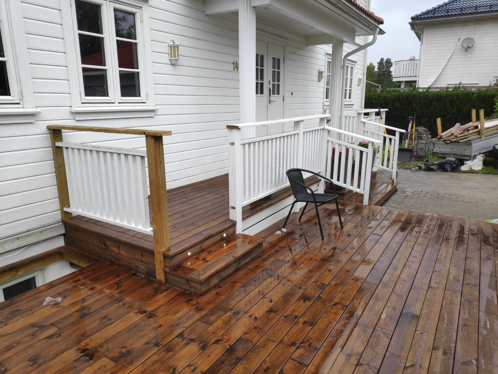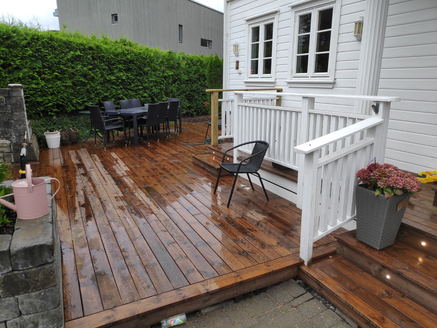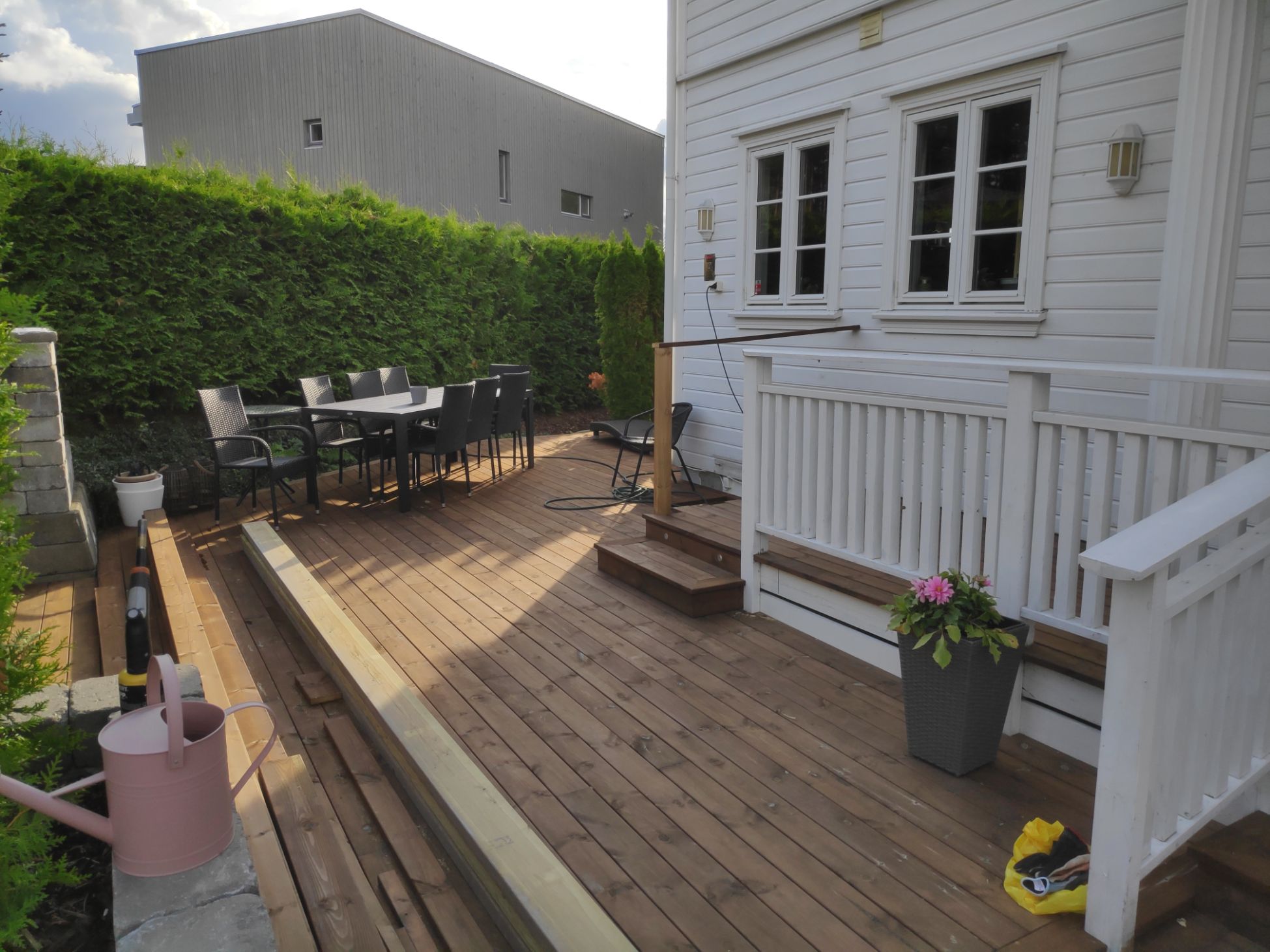 Stor terrasse med et areal på ca. 140 m2 i et system av skjulte terrasseskruer.