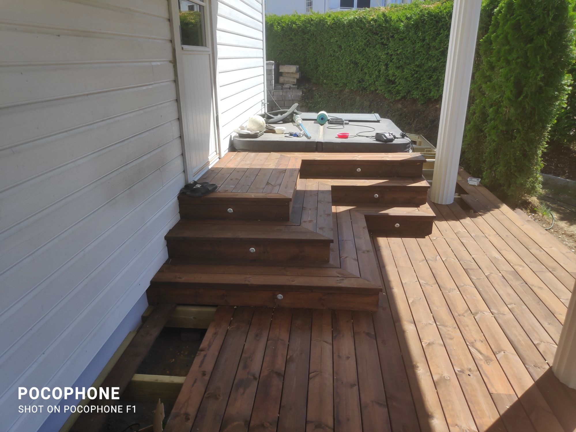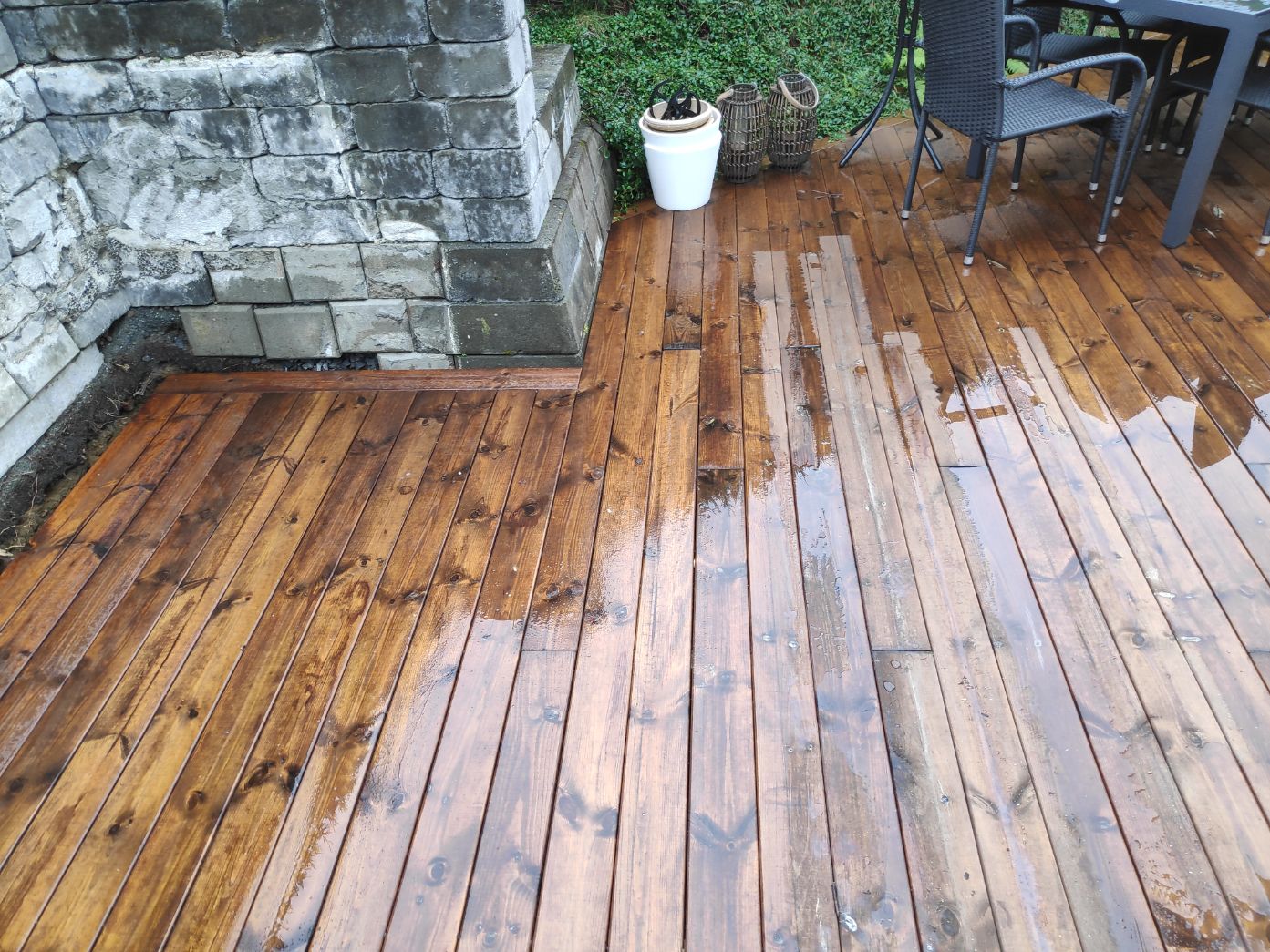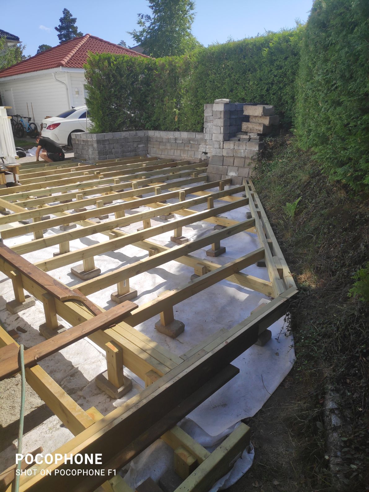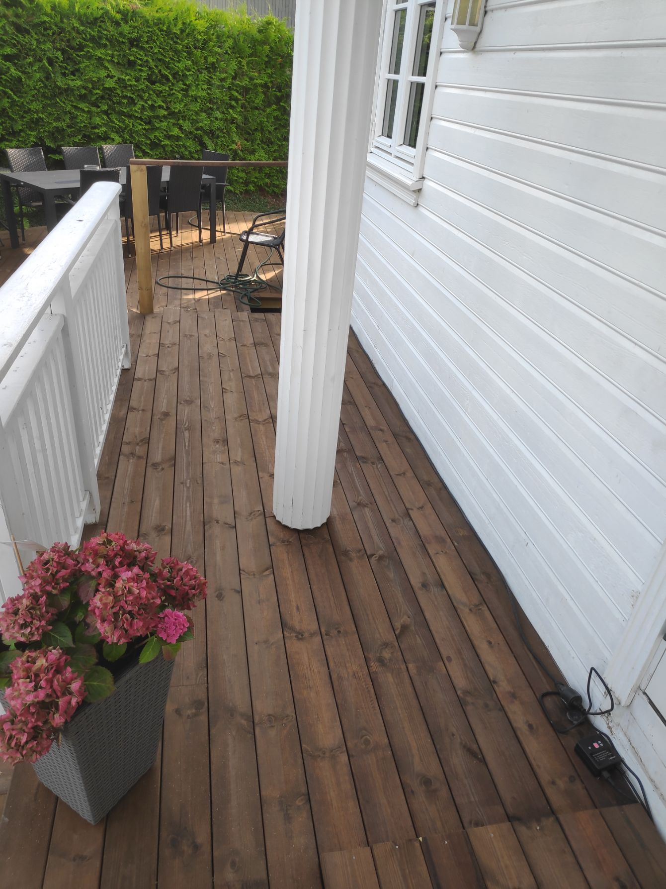 Stor terrasse med et areal på ca. 140 m2 i et system av skjulte terrasseskruer.