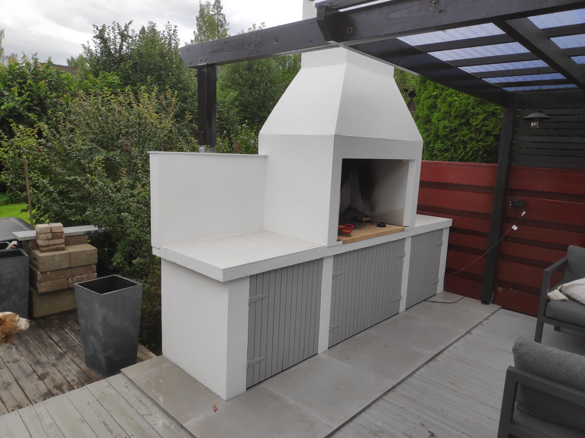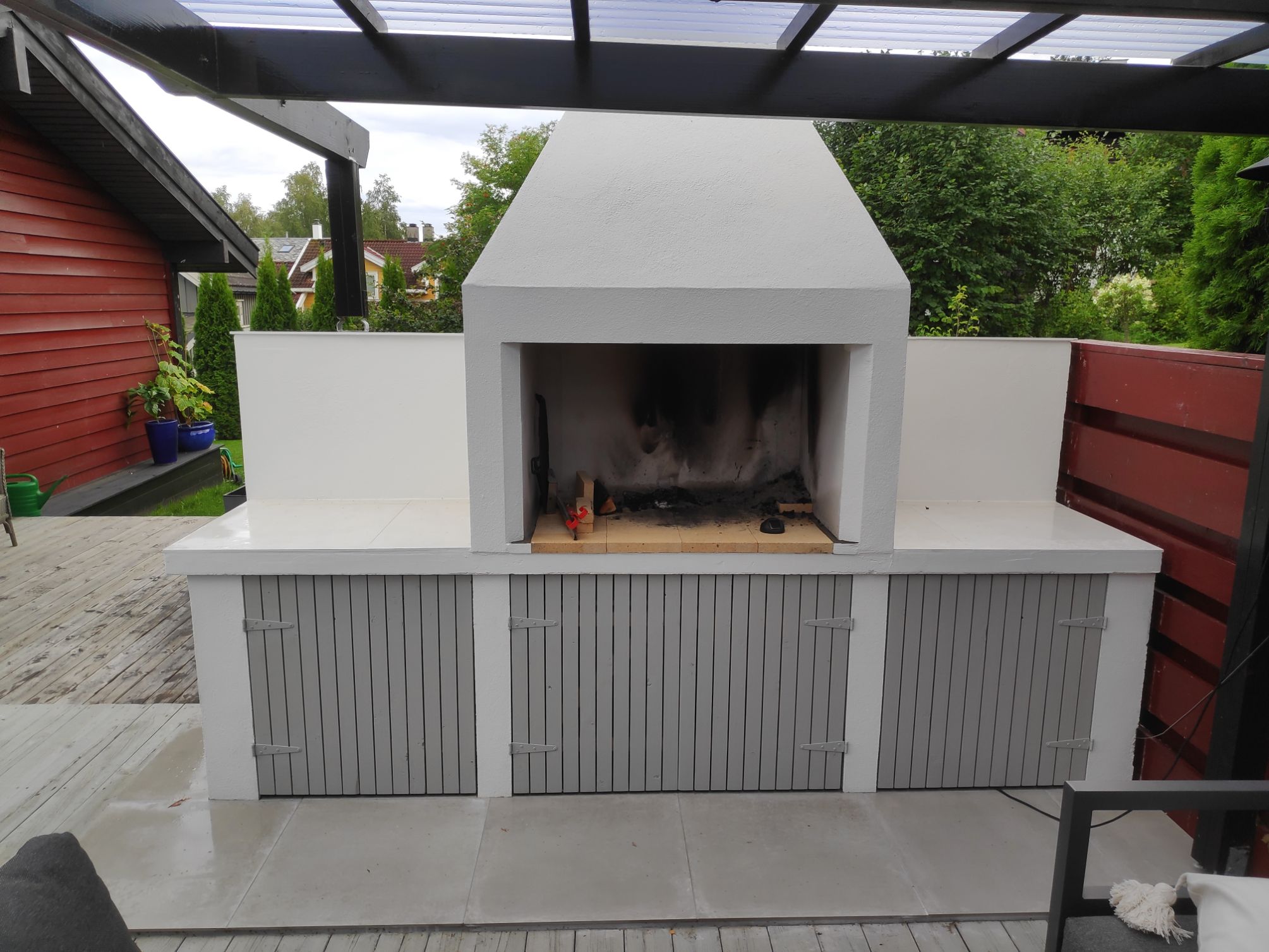 Vi har laget denne utegrillen på forespørsel fra kunde. Basert på kundens idé og hans håndtegnede tegning, klarte vi å implementere kundens konsept og innfri hans forventninger.